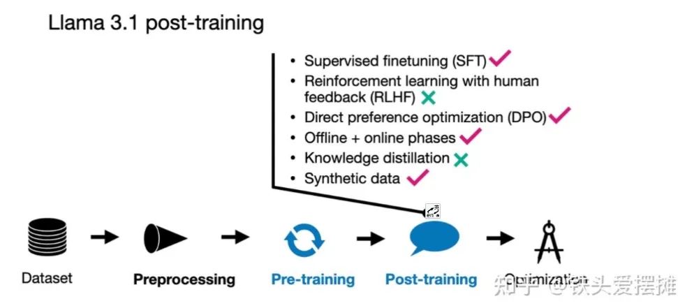 Llama 3.1 论文中的注释图,描述了后训练过程