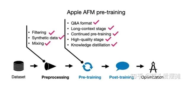 在苹果智能基础语言模型一文中,研究团队概述了旨在“苹果智能”环境中在苹果设备上使用的两个主要模型的开发。为了简洁起见,在本节中这些模型将被简称为 AFM,即“Apple Foundation Models”。