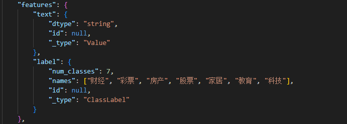 对于保存后的数据集,我们还要对dataset_info.json进行一定的修改,保证label的格式与标题进行对应。